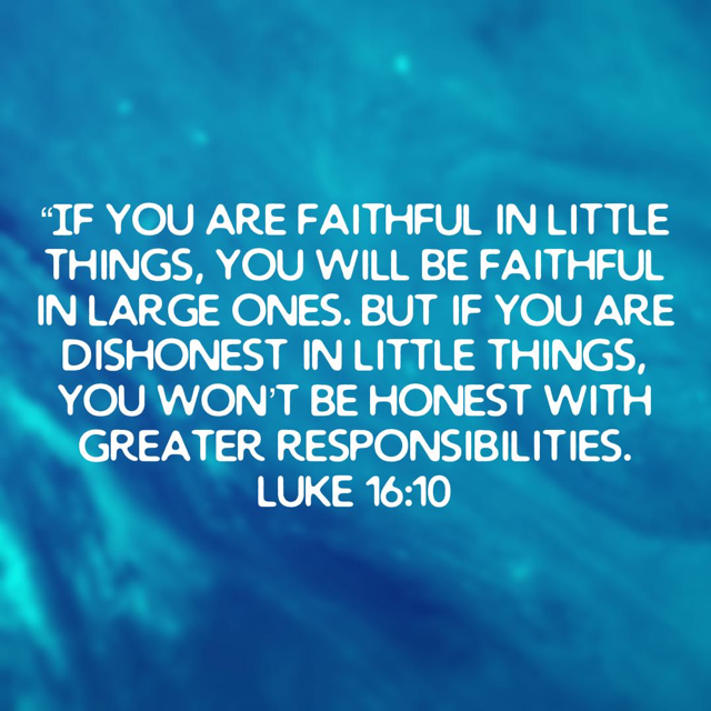 “If you are faithful in little things, you will be faithful in large ones. But if you are dishonest in little things, you won’t be honest with greater responsibilities.”